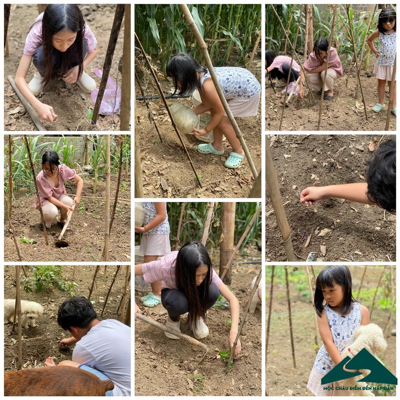 Chị Nguyễn Lê Thủy (quận Tây Hồ, Hà Nội) lại khác, chị đưa 2 đứa nhóc lên trốn nóng và cho con tìm hiểu về cuộc sống ở một môi trường mới cách xa thành phố. 3 mẹ con hàng ngày đi bộ dạo quanh khu nghỉ, ngắm đồng lúa, đi thả diều. Chị cũng cho các thăm bản làng để tìm hiểu văn hóa, chị dạy con trồng rau, nấu ăn... Chị bảo: mình và các cháu ở đây hơn 1 tuần rồi, mát mẻ các cháu thích lắm, sáng đi chơi, trưa nấu ăn, chiều bơi hoặc đi thả diều... ngày thế mà trôi qua cũng nhanh.